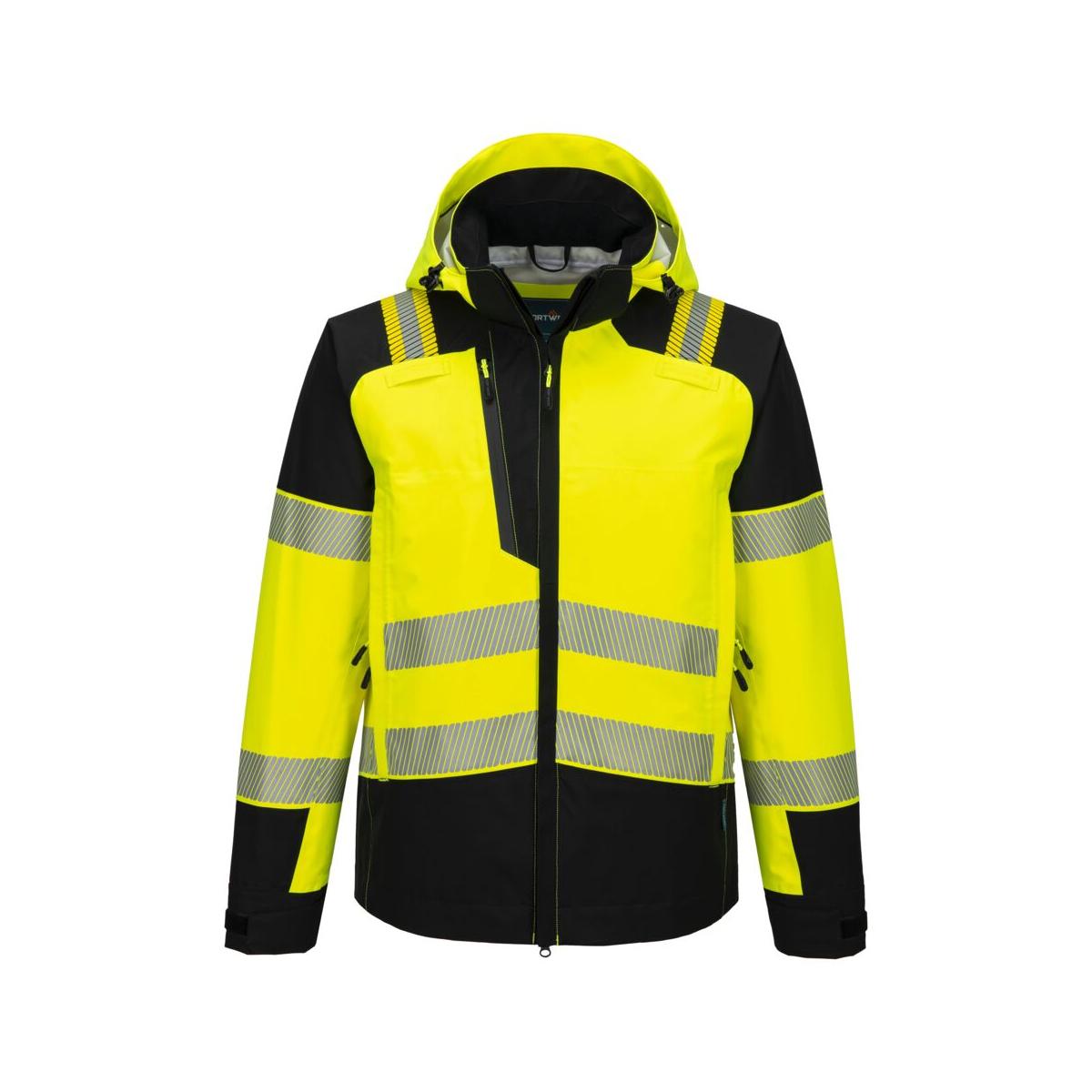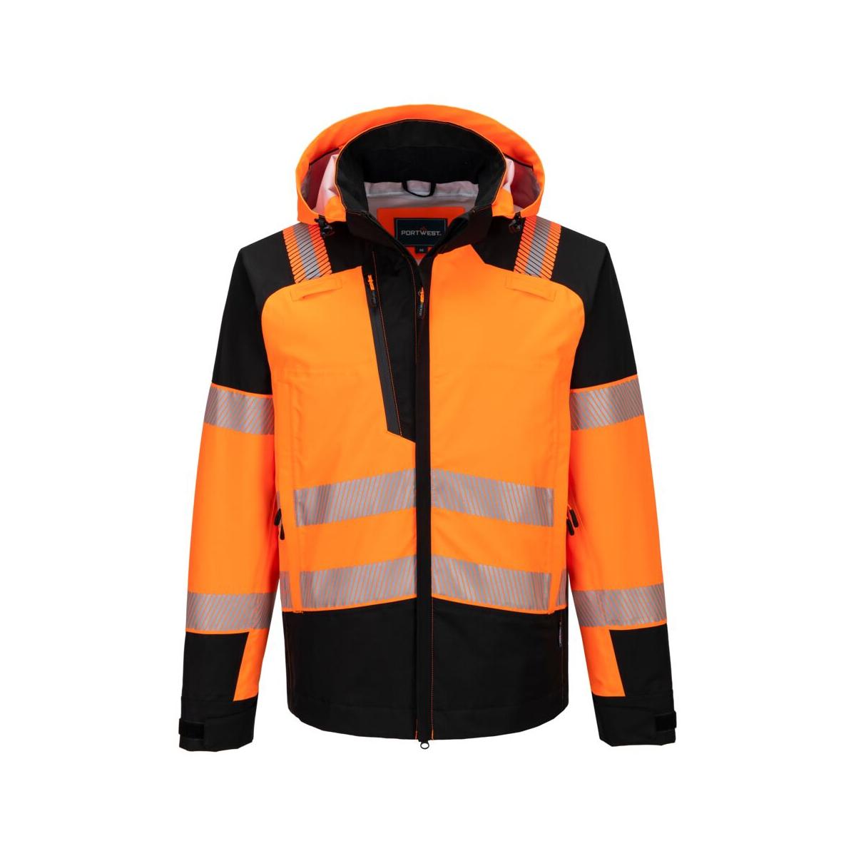 Deze PW3 Hi-Vis Regenjas (3L) is ontworpen met zowel comfort als bescherming in gedachten. Hij is gemaakt van Portwest Extreme stretch soft-touch (3L) stof en is water- en winddicht, zodat de drager onder alle omstandigheden droog blijft. Deze jas is gecertificeerd volgens EN343 klasse 4:4 en heeft een smalle driedubbele stormflap om de ritssluiting te beschermen en de waterdichtheid te verbeteren, een 2-way ritssluiting middenvoor, ventilatiepanelen in alle zakken voor een beter ademend vermogen, een afneembare capuchon die geschikt is voor helmen met een voorgevormde klep en een 3-point verstelsysteem, verstelbare manchetten, zakken die geschikt zijn voor harnassen en een verlengde ruglengte voor extra bescherming tegen vuil. Een must-have in de PW3 collectie