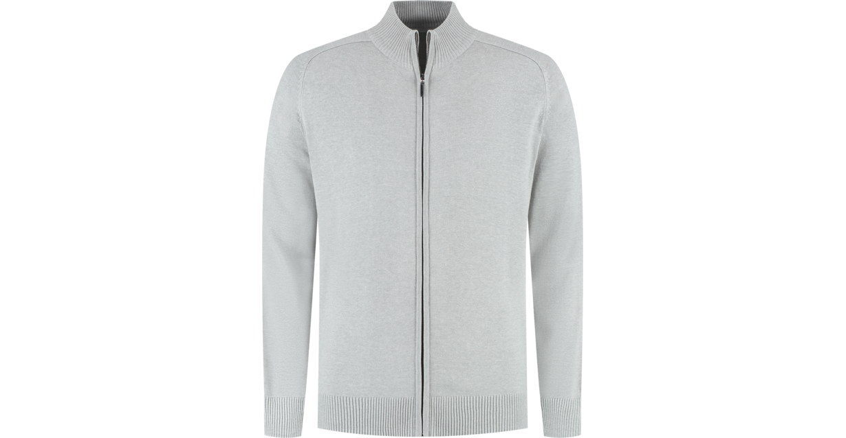 Zip cardigan, 50% katoen / 50% acrylic, 12 gauge breisel, +/- 460 gr/st, modern fit met opstaande kraag en verdekte metalen YKK rits. Raglanmouw inzet, mouwen met ribmanchet en tailleband in 2x2 rib.