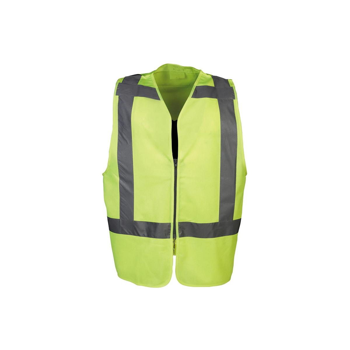 De Solaka is een signalisatiegilet met reflecterende banden op de buik, rug en schouders. De gilet is afgewerkt met een V-hals en ritssluiting.