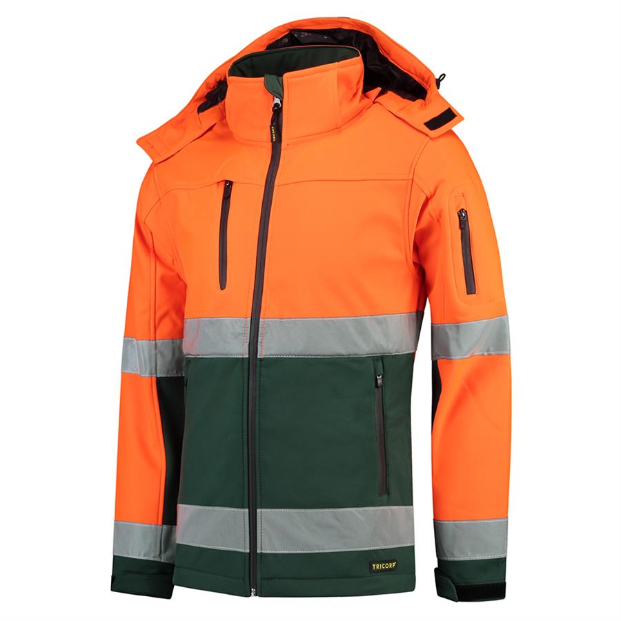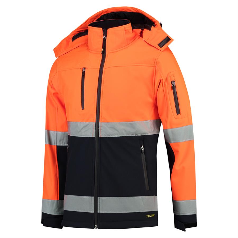 De Softshell ISO20471 Bicolor biedt je een hoge zichtbaarheid conform de norm EN ISO 20471:2013, klasse 2, en beschikt over gestikte striping. De veiligheidsjas is verkrijgbaar in 3 kleurencombinaties. Deze jas met hoge zichtbaarheid is gemaakt van softshell, een ademende en waterafstotende stof. De strak op elkaar geweven lagen maken het beschermede effect extra groot zonder in te boeten op het zachte en prettige draagcomfort. Dit is te danken aan de ademende PU-tussenlaag en het gebruik van mechanische stretch. De Softshell ISO20471 Bicolor is dus een winddichte en waterafstotende jas. Ook is de veiligheidsjas voorzien van gelamineerde waterafstotende ritsen. Aan de onderzijde is de jas verstelbaar met een elastisch koord met stoppers. Verder beschik de softshell jas over een verlengd rugpand, baardkapje en verstelbare manchetten d.m.v. klittenband. Deze jas is daarnaast voorzien van 4 zakken aan de voorzijde, een binnenzak die geschikt is voor je telefoon, en ID-badge. Wij raden aan om alleen druktechnieken te gebruiken die geschikt zijn voor softshell stoffen om doorbloeden te voorkomen.