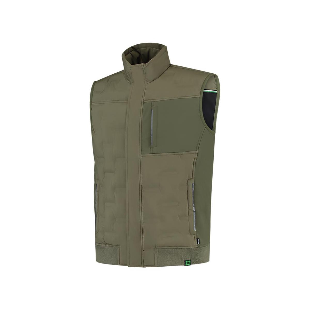 De bodywarmer bestaat voor 100% uit recycled polyester, heeft een PU-membraan en een 175 grams doekgewicht. Dankzij het gebruik van recyclede grondstoffen is de CO2-uitstoot lager en verbruiken we minder water en energie tijdens de productie dan bij een werkjas van virgin polyester! Deze bodywarmer is voorzien van kwalitatieve YKK ritsen. Dit item is verkrijgbaar in de kleuren Army, Ink en Black en in de brede maatrange XS-5XL.