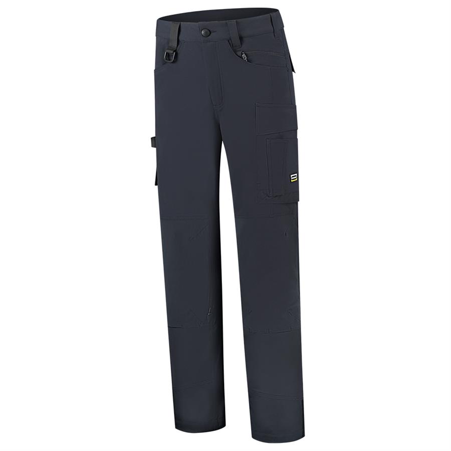 De stretch werkbroek heeft een voorgevormde pasvorm wat de broek extra comfortabel maakt. De slijtvaste stof Cordura® verstevigt de broek op de volgende plaatsen: kniestukken, dijbeenzakken en uiteinde broekspijpen. De kniestukken kunnen met een rits worden geopend om kniekussens toe te voegen. De verschillende zakken bieden voldoende opbergmogelijkheden voor al je materiaal. Heb jij lange benen? Deze stretch werkbroek heeft een dubbele zoom voor 6 centimeter extra lengte. Op het achterbeen en de zipperpuller vind je reflecterende accenten voor extra zichtbaarheid. Werk je met een ID-houder? Dan kun je die bevestigen aan de ribstape loop onder de klep van de dijbeenzak.